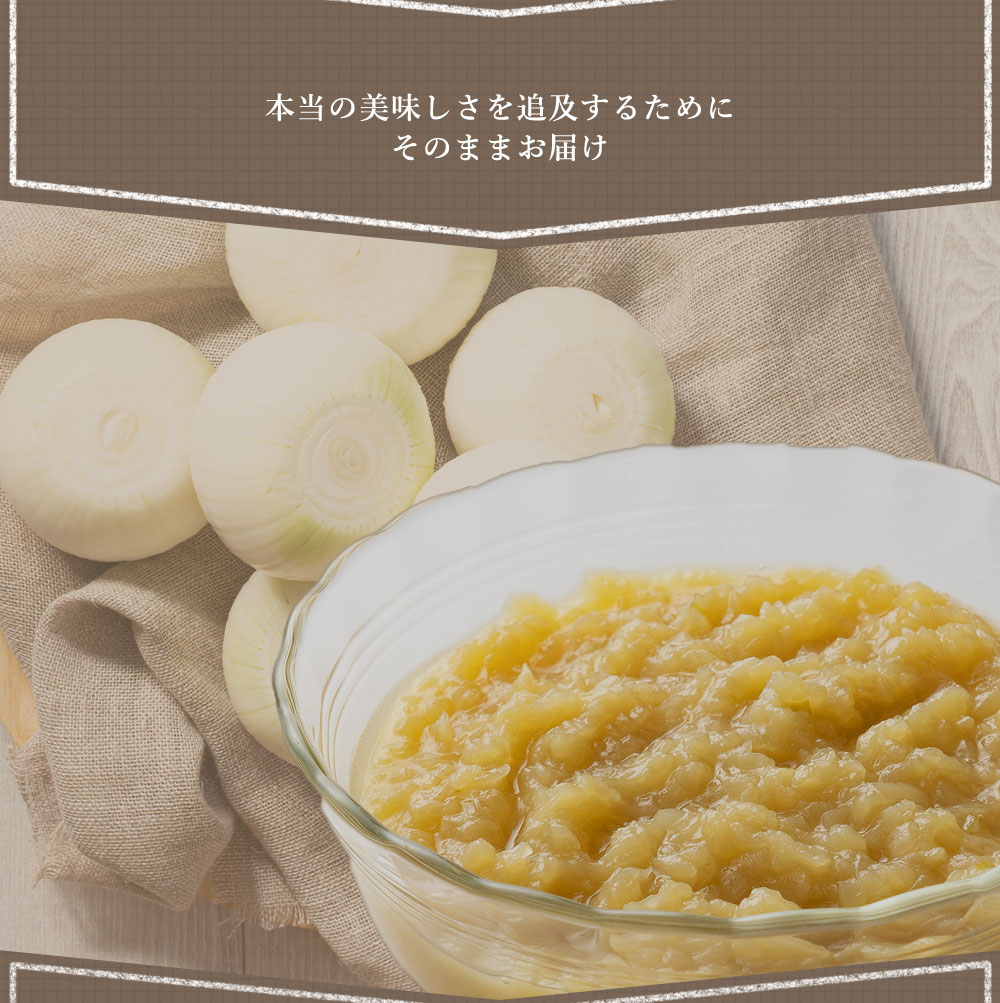 5ミリ状にダイスカットした淡路島玉ねぎをサラダ油を使用して直火釜で50%まで炒めたソテーオニオンです。